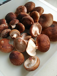 Risoto. Esse pecado que só se pode cometer muito raras vezes, e normalmente marca datas especiais em que celebramos com boa comida... Este foi exceção. Uma simples refeição de almoço no dia de folga, para fazer jus aos deliciosos cogumelos shitake de um produtor local. O marido não descansou enquanto não me convenceu a fazer um guloso risoto com os cogumelos que só de olhar já nos deixam saciados.